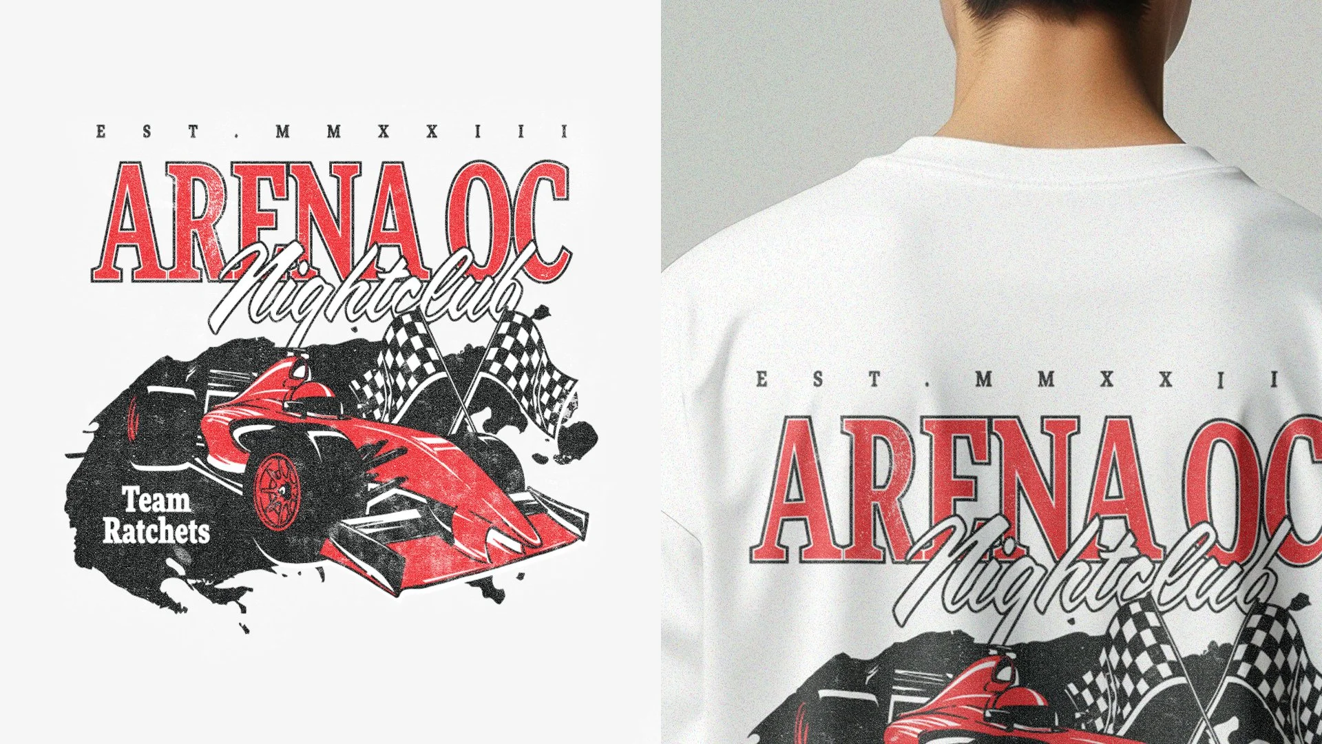 ARENA Nightclub 2.0 marked the reopening of the iconic nightlife brand at a new Orange County location (previously ARENA KTOWN in Los Angeles), building on its reputation as a culturally influential space known for hip-hop and EDM within the Asian community. I was brought on as a freelance apparel graphic designer to create limited-edition, vintage-inspired launch tees sold exclusively during opening weekend, with no additional reprints to preserve collectibility. The designs balanced nostalgia and relevance, drawing from sports and motorsport references to spark immediate recognition while integrating key brand identifiers tied to Arena’s history and community. With a flexible brief and close collaboration with one of the founders, the project relied on strong conceptual judgment to deliver bold, wearable designs that energized Arena’s next chapter.